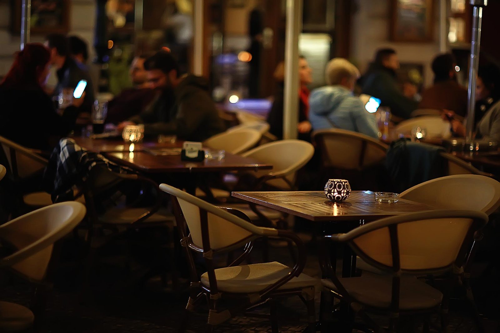 3 khu vực không gian (trong nhà, ngoài trời, đường phố) thoải mái và vừa đủ sôi động. Không quá ồn,vẫn có thể vừa ăn, nhậu vừa nói chuyện được.